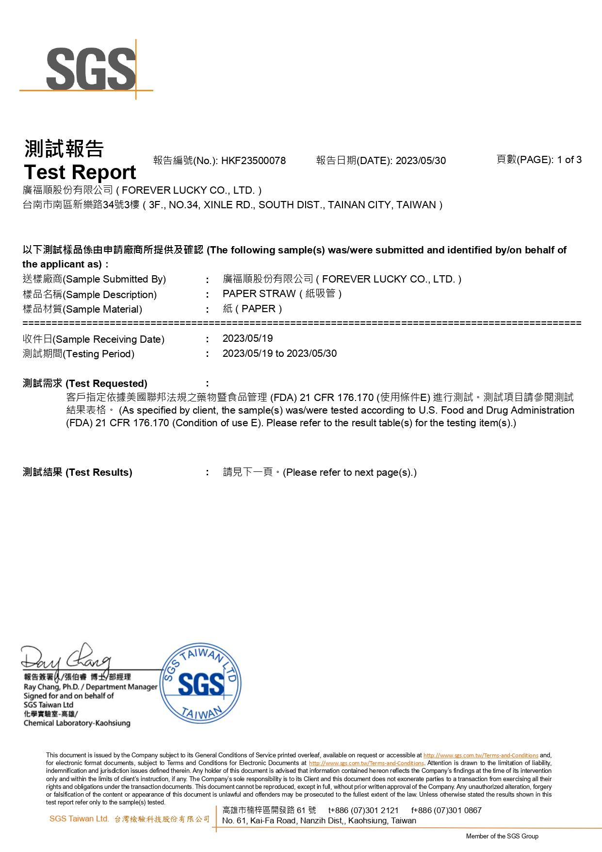 本公司榮獲HACCP及ISO22000食安認證廣福順紙吸管,獲環保紙吸管專利證書,紙吸管100%台灣製造,所使用的紙張來源皆為FSC森林管理委員會認證與使用之色墨皆符合美國FDA及台灣SGS食品及標準,可安心使用。